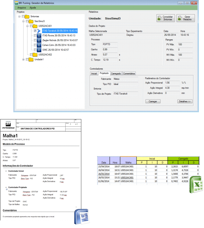 Organiza e exibe as informações do projeto dos controladores PID salvos nos módulos Offline. A partir destas informações são criados relatórios em arquivo com extensão .doc. É possível ainda gerar planilha do Excel com uma tabela consolidada das sintonias carregadas através do BR-Tuning.