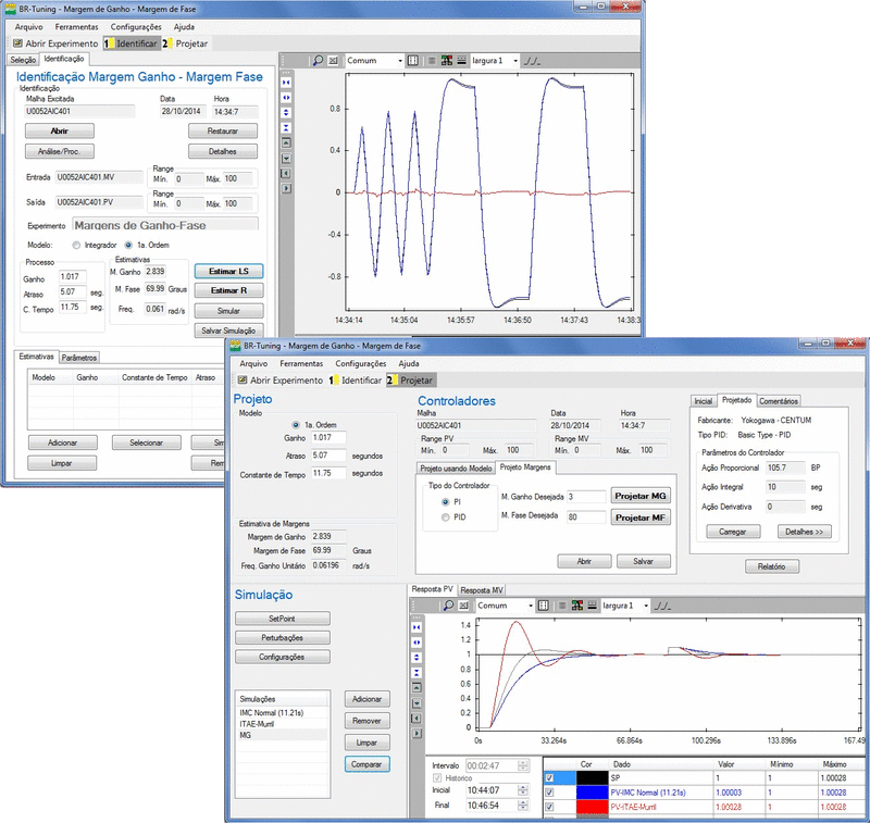 Utiliza as informações do experimento de MARGENS realizados em uma malha de controle. Este experimento pode ser do tipo Margem de Ganho, Margem de Fase ou a combinação dos dois experimentos, sempre realizado com a malha em modo automático (malha fechada) e utilizando sinais de excitação do tipo RELÉ..