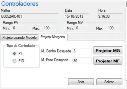 O projeto do controlador PID utilizando Margens calcula novos valores dos parâmetros do controlador para que o sistema resultante obtenha as margens de ganho ou de fase especificadas em projeto.