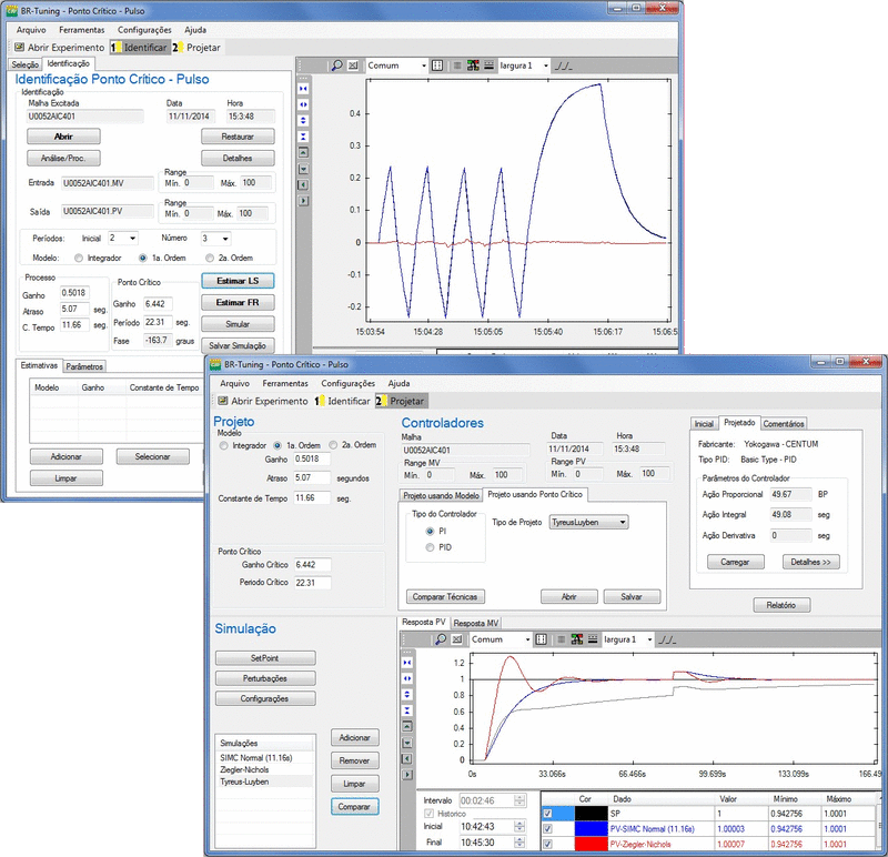 Para o caso do experimento relé-pulso é possível ainda realizar a identificação de modelos de primeira ordem com atraso (FOPTD) e segunda ordem com atraso (SOPTD) do processo tornando possível também a utilização de técnicas de projeto baseadas em modelo similares as do módulo REPOSTA AO DEGRAU.