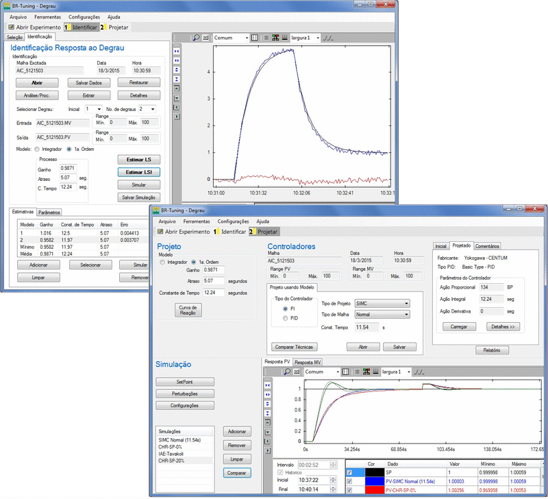 Identifica modelos de Primeira Ordem com Atraso (FOPTD) e modelos Integradores com Atraso (ITD) a partir dos experimentos de teste do DEGRAU realizados em uma malha de controle, em modo manual ou automático, sendo possível realizar o projeto de controladores PI/PID através das diversas técnicas baseadas nos modelos estimados. Para cada tipo de modelo estimado (FOPTD ou ITD), existe um conjunto de técnicas de projeto disponíveis.